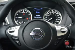Si lo miras desde dentro, apenas notarás un volante nuevo —heredado de Nissan Juke— y algún acabado de mejor apariencia en el tablero. El Sentra no es el compacto más ostentoso, ni busca serlo. En el habitáculo, en general, lo que reina es la funcionalidad. Las formas del tablero son sencillas, ideales para quien no quiere complicarse su existir con tanto botón y formas extrañas. El espacio, además, es ideal para cinco pasajeros y su respectivo equipaje en una cajuela grande y de boca amplia.